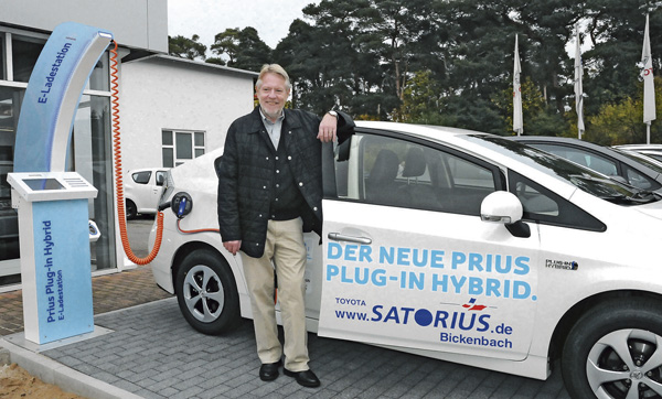 BICKENBACH, Dezember 2012 (meli), Mit der Markteinführung des neuen Toyota Prius Plug-in Hybrid hat Satorius Automobile eine Elektro-Ladestation am Autohaus in der Pfungstädter Straße 39 in Bickenbach aufgebaut. Alle Toyota Hybrid Modelle kommen grundsätzlich ohne Nachladen an der Steckdose aus und erreichen, je nach Modell im kombinierten Verbrauch nach EU-Norm, Werte zwischen 3,5 und 4,1 l/100km. mehr »