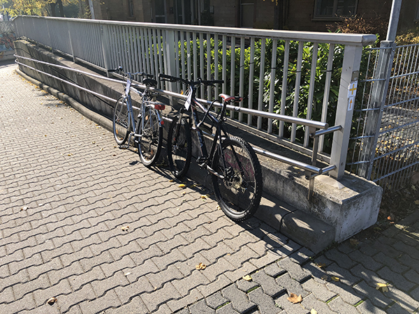 Leider kommt es immer wieder dazu, dass die Fahrräder an die Handläufe der Fußgängerunterführung am Bahnhof angeschlossen werden.