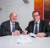 Rainer Babylon, Bereichsleiter Vertrieb/Marketing GGEW AG, und Olaf Kühn, Bürgermeister der Gemeinde Seeheim-Jugenheim (v.l.). Foto: M. Fippel