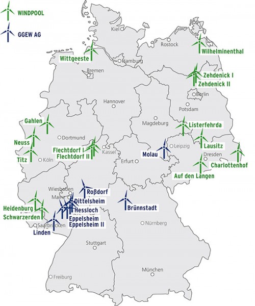 GGEW-Betriebsportfolio: Windparks der GGEW AG und der WINDPOOL GmbH & Co. KG