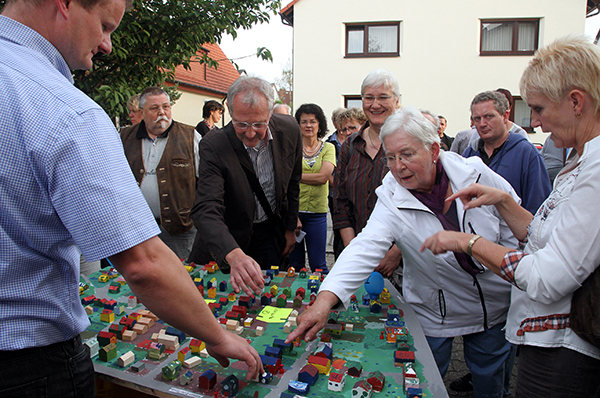 Stadt bespricht mit Bewohnern Entwicklungsmöglichkeiten des Wohnquartiers am Modell