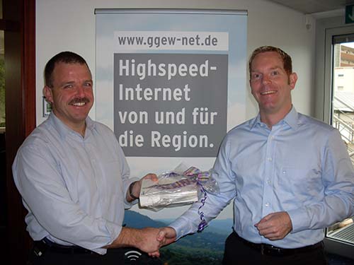 BENSHEIM, November 2013 (meli), Die GGEW net GmbH, der Internet-Service-Provider an der südlichen Bergstraße, hat im Zuge der SEPA-Umstellung unter den ersten 100 Rücksendungen der SEPA-Lastschrift-Mandate ein IPAD-Mini verlost. Unser Foto zeigt den glücklichen Gewinner Marc Müller mit dem Geschäftsführer der GGEW net GmbH, Herrn Uwe Sänger. Weitere Infos zur GGEW net GmbH erhalten Sie unter www.ggew-net.de.