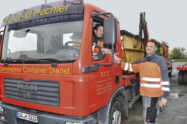 Ottmar Hechler (rechts) vom Gernsheimer Container Dienst findet auch für kniffelige Aufträge immer eine Lösung.