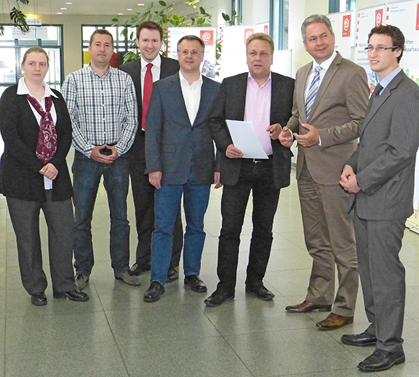 Dr. Peter Müller (Vorstand GGEW) und MitarbeiterInnen mit zahlreichen Bürgermeistern der Gemeinden.
