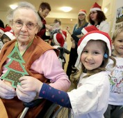 Die Gruppe „JA – Jung und Alt gemeinsam“ besuchte und beschenkte in ihrer traditionellen Adventsaktion Bewohner der Seeheim-Jugenheimer Seniorenheime