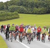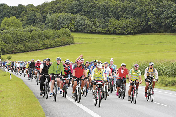 Eine Radlergruppe bei der hr4-Radtour. Foto: hr/Norbert Klöppel