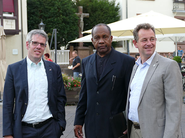 Gemeinsame Wertschätzung: v.li.: Landrat Christian Engelhardt, Direktor Lázaro Allen und Bürgermeister Christian Schönung.