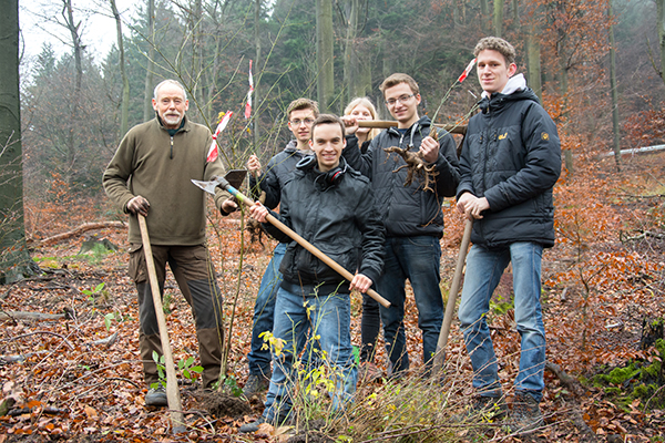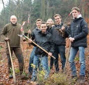 MALCHEN, Dezember 2014 (meli), Unser Wald ist größtenteils mehr eine artenarme Holzplantage als ein artenreicher Naturraum. Das wollten die Hermeline ein kleines bisschen ändern. Die Hermeline sind die 17 bis 19jährigen Jugendlichen der Naturerlebnis- und Naturschutzgruppe Die Wühlmäuse. Förster Schilling überließ ihnen ein stark gelichtetes Stück Wald zwischen Malchen und Eberstadt, in dem Buchen, Eichen, Bergahorn und Douglasien wachsen. mehr »