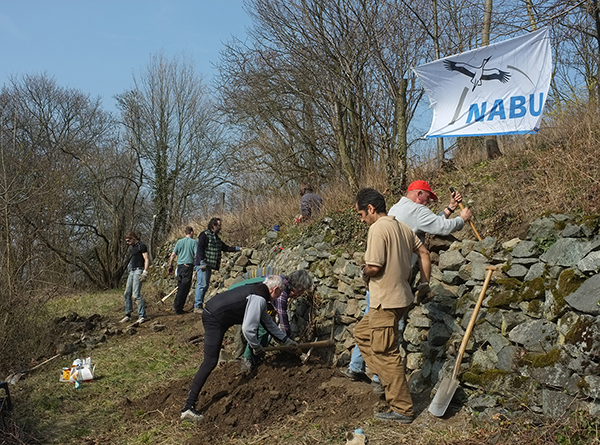 SEEHEIM-JUGENHEIM, März 2014 (meli), Die ehemaligen Weinberge am Seeheimer Blütenhang beherbergen mit Schlingnatter und Mauereidechse besonders bedrohte Reptilienarten. Auch die Zauneidechse und Ringelnattern kommen dort vor. Um diese Tiere zu unterstützen, haben 15 Helfer des NABU Seeheim–Jugenheim und des Better World Clubs eingestürzte Trockenmauern repariert und ein Sandschüttung als Eiablageplatz für Eidechsen angelegt. mehr »