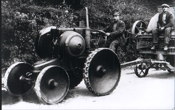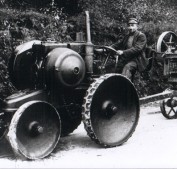 Die Dreschmanschaft mit einem DEUTZ MTH222, Bj 1927 und Strohpresse auf dem Weg zum Dreschplatz.