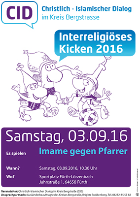 ODENWALD, August 2016 (meli), Auf dem Fußballplatz in Fürth-Lörzenbach wird es am Samstag, den 3. September eine Neuauflage des christlich-islamischen Dialogs der anderen Art geben. Die Fußball-Teams der Imame und der Pfarrer im Dekanat Bergstraße stehen sich im sportlichen Wettstreit gegenüber. Die Muslime sind dem Vernehmen nach hoch motiviert. mehr »