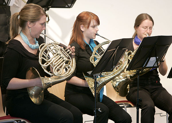 Bläsermusik der Spitzenklasse präsentierten die Ausnahmemusiker, hier die Hornistinnen des Ensembles, die auf ihrer Tournee in Jugenheim Station machten. Foto: S. Oelsner