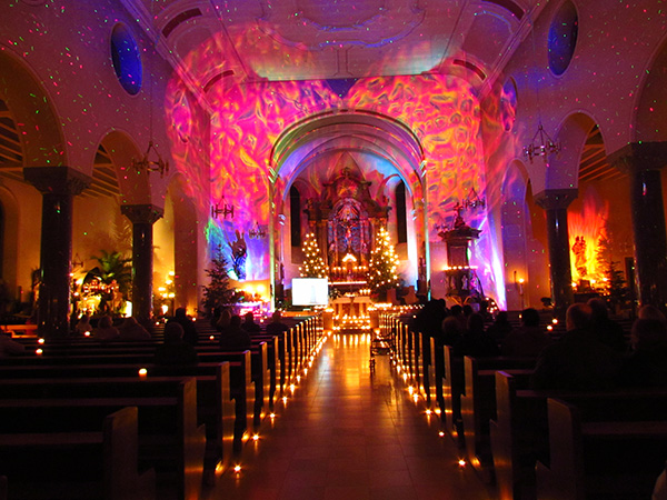 LORSCH, Oktober 2012 (meli), Die meisten Lorscherinnen und Lorscher kennen die katholische Pfarrkirche St. Nazarius. Sei es vom sonntäglichen Kirchgang oder von gelegentlichen „Stippvisiten“, z.B. zu den zahlreichen Kirchenkonzerten. Doch wer zur „Offenen Kirche“ kommt, mag dann trotzdem seine Augen nicht trauen: Tausend Kerzen erleuchten dann den Raum, der Hochaltar ist in ein mystisches Farbespektrum getaucht, der Marien- und der Josefs-Altar sind wie von Feuer oder Wasser umspült, Menschen treten ein, verweilen und gehen wieder, lauschen der Musik, wie sie sonst in dem Gotteshaus eher nicht ertönt. mehr »