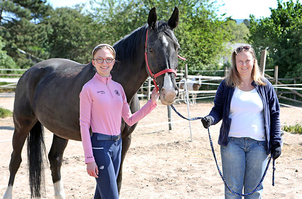 Aufgrund der aktuellen Corona-Situation sind dem Reit- und Fahrverein Seeheim e.V. die Einnahmen aus den Reitstunden weggebrochen. Mit diesen Einnahmen wird u.a. der Unterhalt und die Versorgung der Schulpferde gewährleistet. Unser Foto zeigt die erste Vorsitzende Kristin Pagnia (re.) und Pressewartin Laura Held mit Schulpferd „Belle“. Foto: soe