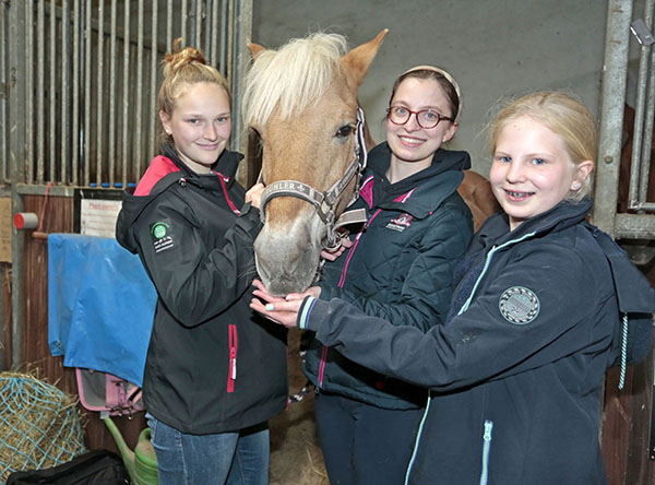 Nicole Pagnia, Laura Held und Emma Kaffanik (v.li.) vom RuF Seeheim mit „Goldy“. Foto: soe