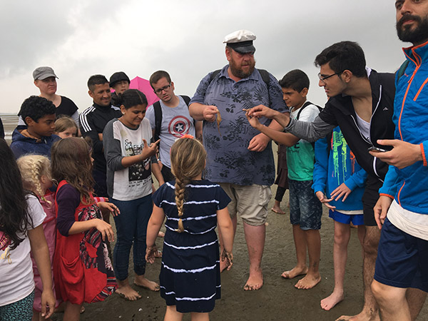 Engagiert beteiligte sich die Gruppe beim Krabbenfang.
