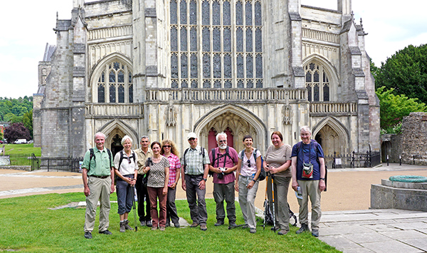 Am Ende des vierten Wandertages: Die Gruppe vor der Kathedrale von Winchester.