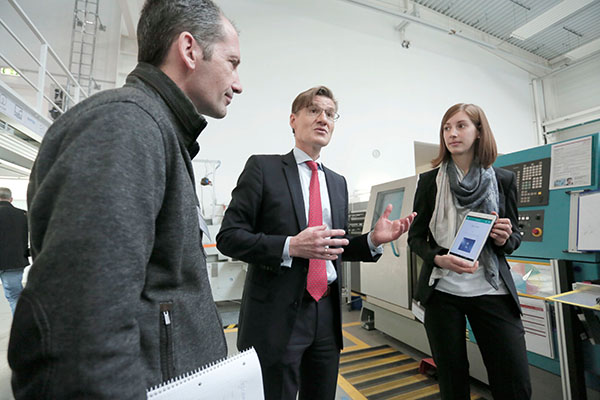 Was die Digitalisierungswelle der Industrie 4.0 an Veränderungen und Chancen bedeutet, und wie sich dadurch Prozesse und Produktion verändern, erläuterte Prof. Dr. Ing. Joachim Metternich (mi.). Foto: soe