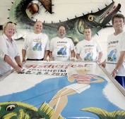 Auf Hochtouren laufen die Vorbereitungen beim Gernsheimer „Fischerfest-Team“ für das 65. Rheinische Fischerfest. Unser Foto zeigt (v.li.) Agi Mager (Pressesprecherin) , Thomas Barylla, Manfred Kuhn, Uwe Schmitt und Manfred Schmitt. Foto: Stefan Oelsner