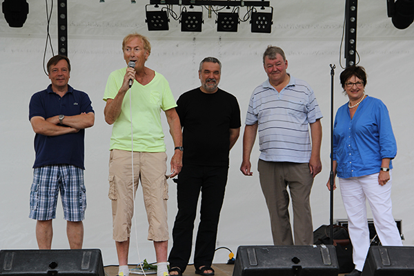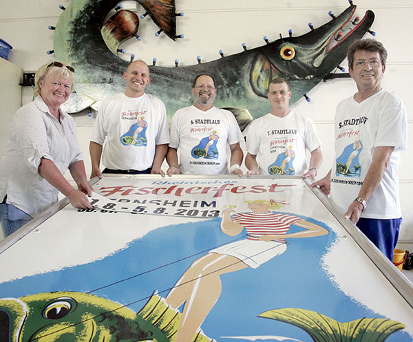 Auf Hochtouren laufen die Vorbereitungen beim Gernsheimer „Fischerfest-Team“ für das 65. Rheinische Fischerfest. Unser Foto zeigt (v.li.) Agi Mager (Pressesprecherin) , Thomas Barylla, Manfred Kuhn, Uwe Schmitt und Manfred Schmitt. Foto: Stefan Oelsner
