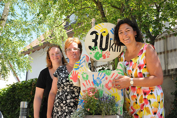 Gemeinsam mit der Fraktion der IUHAS (Initiative Umweltschutz für Hähnlein, Alsbach und Sandwiese) startete Doris Lochmann die Aktion „Die Hejner Gaas wird zum Kunstobjekt“. Die Ursache für die Aktion ist das leidige Thema mit einer Tempo 30-Zone in der Hähnleiner Ortsdurchfahrt der L 3112. Seit vielen Jahren rasen Autos und LKW`s mit überhöhtem Tempo durch den Ort und es hat schon mehrere Tote bei Verkehrsunfällen gegeben. Die Gemeinde ist ebenfalls seit Ewigkeiten bemüht, eine Tempo-30-Zone einzurichten, jedoch ist Hessen Mobil für die Geschwindigkeitsbegrenzung der Landesstraße in der Ortsdurchfahrt verantwortlich und dort sieht man leider (noch) keinen Bedarf für Tempo 30 in Hähnlein, was für viele Anwohner ein beispielloser Skandal ist. Auch Bürgermeister Rausch beißt sich seit langem die Zähne an Hessen Mobil aus. Besonders durch den verstärkten LKW-Verkehr der Fa. Intersnack ist die Geduld der Ortsbürger langsam am Ende. Ein geplantes Hochregallager auf dem Firmengelände an der B3 wurde wegen großem Protest von Alsbacher und Bickenbacher Bürgern von der Firmenleitung ad Acta gelegt. Die Hähnleiner dürfen nun die Suppe mit den ständigen LKW-Brezel-Touren von Alsbach nach Worms ins Intersnack-Lager und zurück auslöffeln.